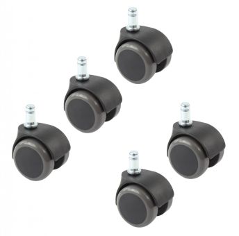 Satz à 5 weichen ummantelten standard Hockerrollen für harte Böden (Parkett, Laminat-, Platten-, Stein-, Betonböden etc.) mit weicher Radbandage.