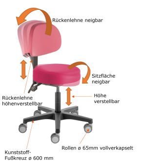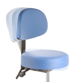 Rollhocker «Poppi® Backrest» ausgerüstet mit mehrfach verstellbarem (Höhe und Neigung), ergonomisch geformtem Rückenteil - für eine Entspannung zwischendurch. Individuell einstellbarer Permanentkontakt der Rückenlehne (d.h. die Rückenstütze folgt Ihrem Rücken, wenn Sie sich nach vorne neigen wie bei einem Bürostuhl).