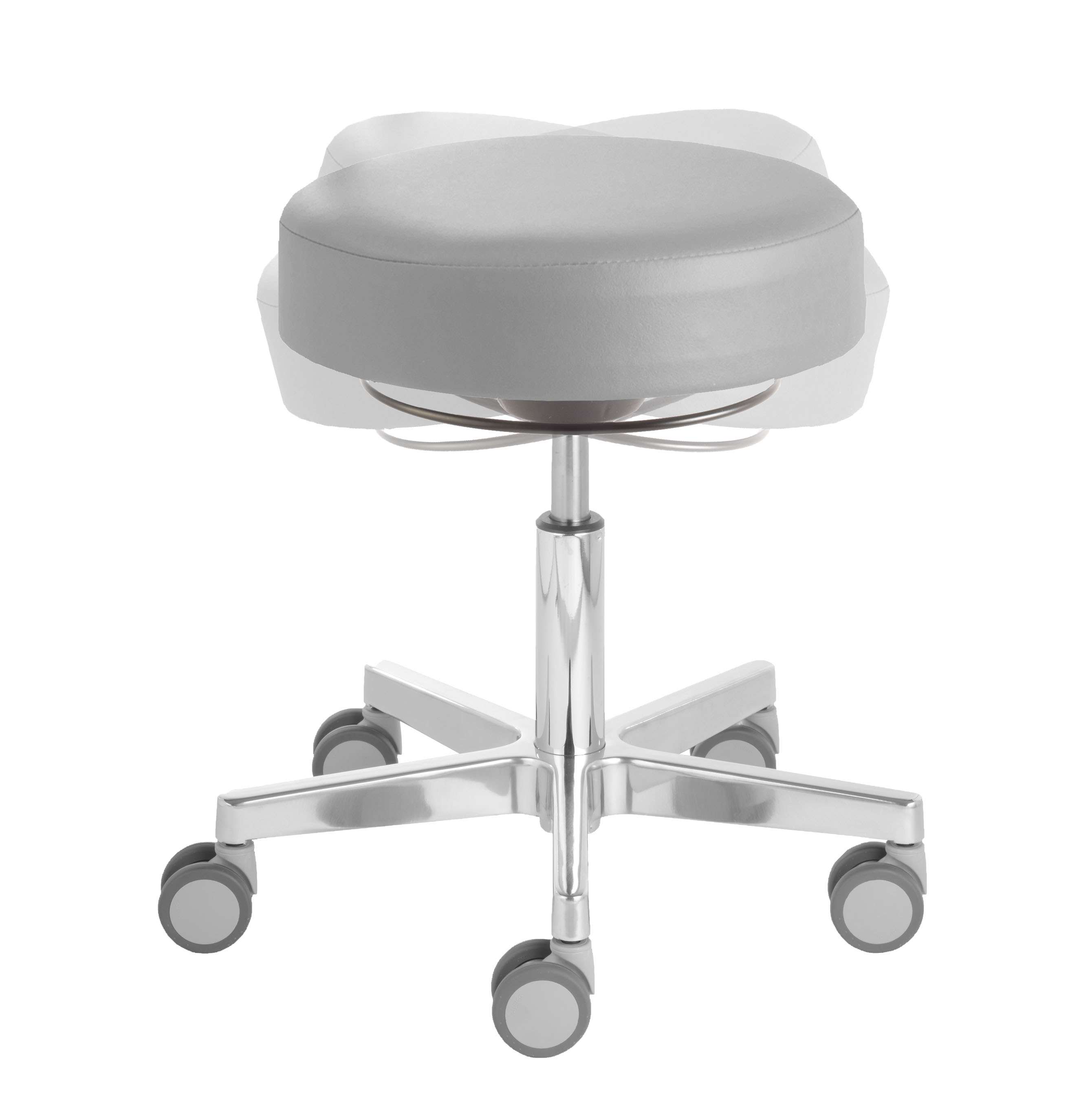 Ein attraktiver Rollhocker der Champions-League aus der deutschen Manufaktur «Prova Nova». Ausgestattet mit einer beweglichen Ergo-Sitzfläche, weiche kontrollierte Bewegungen ermöglicht und so zur Kräftigung Ihres Rückens beiträgt. Das kleine, wendige ALU-Fusskreuz sorgt dafür, dass Sie nirgendwo anstossen. Auch dieses Modell ist mit extragrossen Komfortrollen Ø 65mm mit ausgezeichneten Laufeigenschaften und einer Ringauslösung zur Höhenverstellung ausgerüstet.