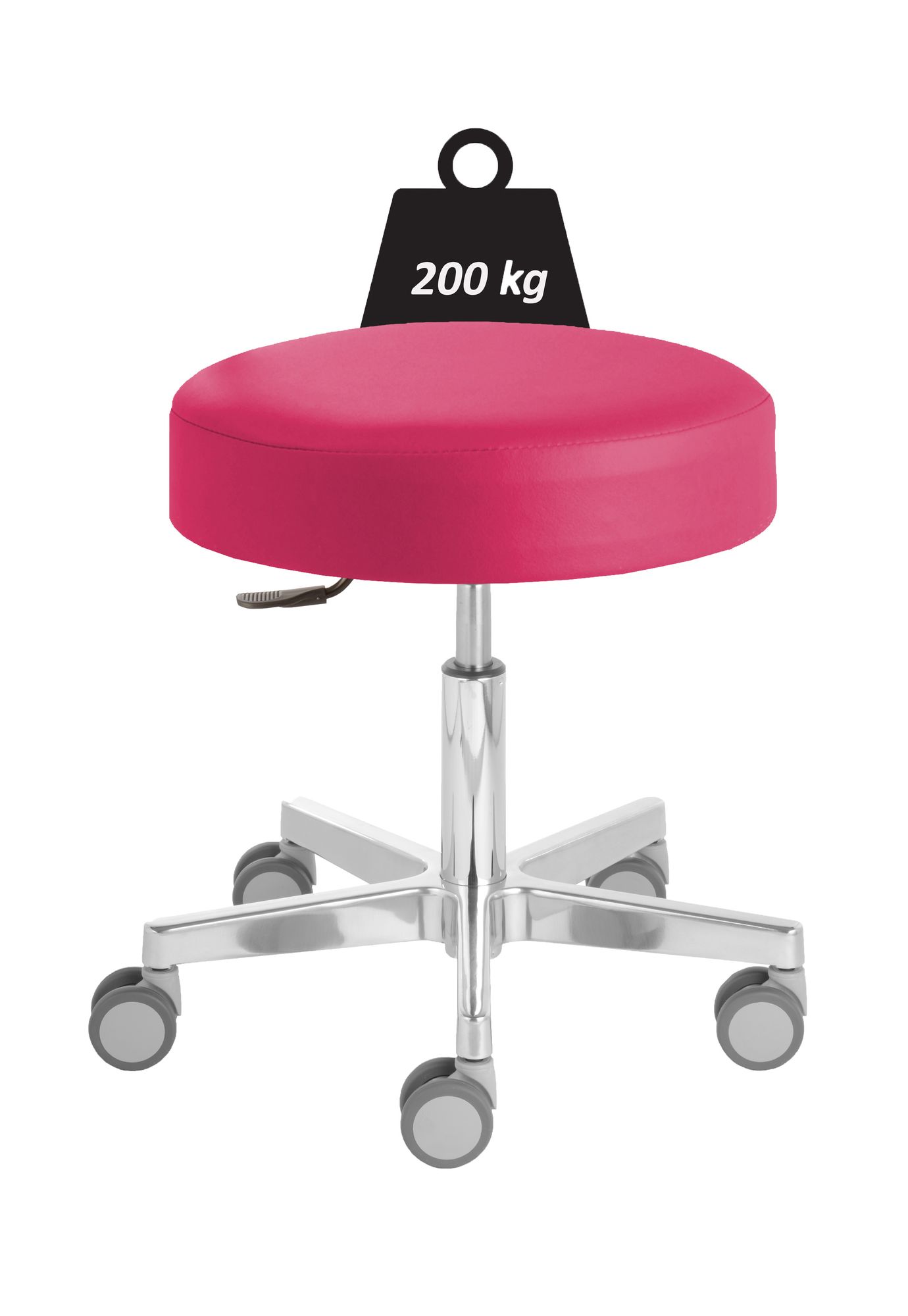 Rollhocker «Puffi Le Mans heavy» Standard-Höhe 48cm - 61cm, Tragfähigkeit 200kg, extragrosser Rundsitz Ø 40cm, verstärktes ALU-Fusskreuz von nur Ø 52cm, Komfortrollen Ø 65mm