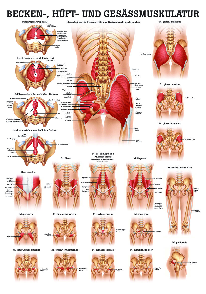 Anatomische Lehrtafel «Becken-, Hüft- und Gesässmuskulatur» laminiert