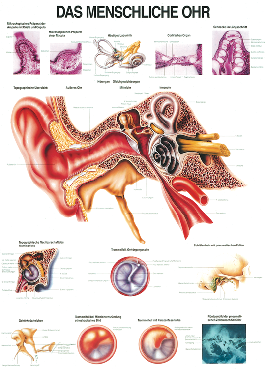 Anatomische Lehrtafel «Das menschlich Ohr/Gehörorgan» laminiert