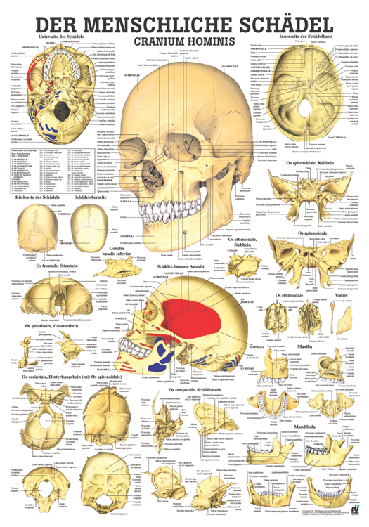 Anatomische Lehrtafel «Der menschliche Schädel (Cranium hominis)», laminiert