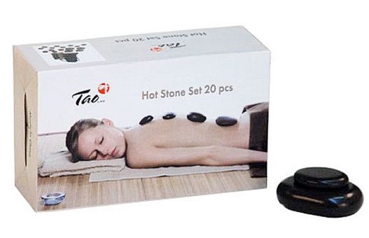 Hot Stone Set mit 20 Steinen. Die Basaltsteine haben ein hohes Wärmespeichervermögen - die Wärme der Steine dringt tief ein und hilft so.