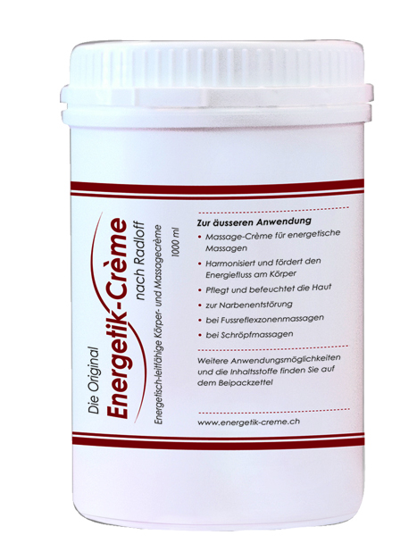 Die in der Energetik-Crème enthaltenen Elektrolyte & Mineralsalze verbessern die elektrische Leitfähigkeit der Haut, fördern und harmonisieren somit den Fluss des Qi in den Meridianen, welche - gemäss traditioneller chinesischen Medizin (TCM) - unseren Körper durchziehen. Die Energetik-Crème mit ihren guten Gleiteigenschaften findet Anwendung in der energetischen Therapie, der Massage, als auch zur Selbstbehandlung und Körperpflege.
