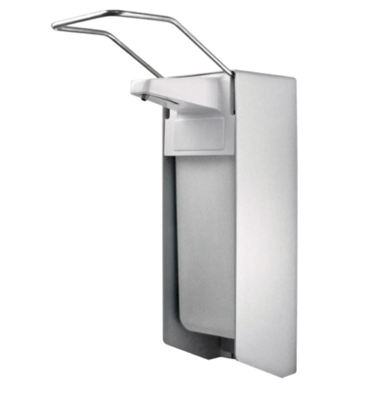 Armhebel-Spender 500 ml aus ALU für Desinfektionsmittel, Seife etc. für die Wandmontage