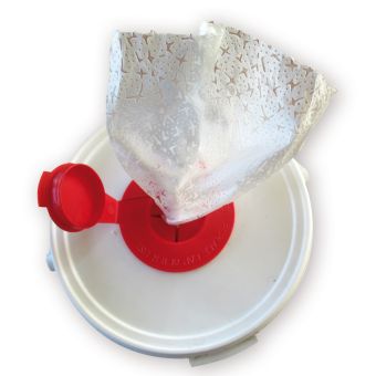 Spendereimer Masse: Ø ca. B: 18 cm, H: 16 cm befüllt mit einer Rolle Viskosevliestücher, perforiert 70 Abrisse (260 mm x 300 mm), getränkt mit «Quick Desinfect».