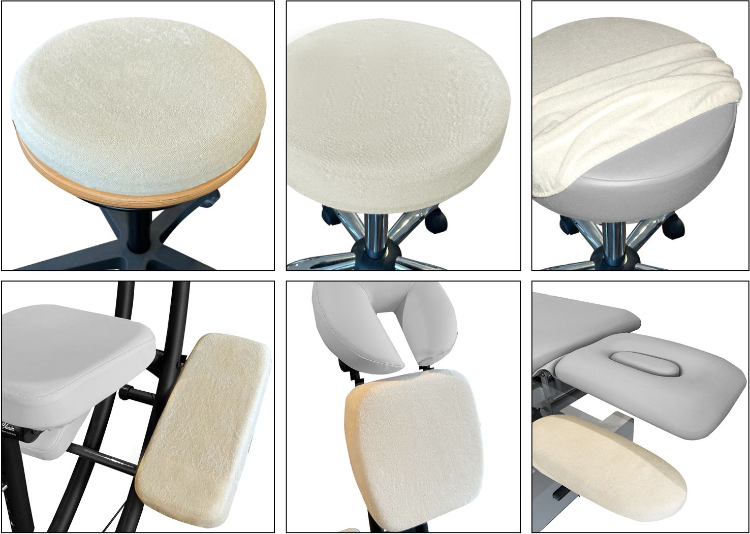 Universell einsetzberer Frottee-Bezug mit eingenähtem Gummizug zum Überziehen über fast alles. Sei es zum Schutz des Polsters Ihres Hockers (bis Ø ca. 36 cm), der div. Polster des Massage Chairs, der Armstützen des 3-teiligen Kopfteils («Luna» Liegen) oder Dynair Ballkissen u.a.