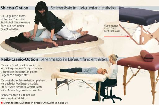 Die komfortable Polsterung (3-lagig) erlaubt auch länger dauernde, entspannungsorientierte Behandlungen und ist ideal für die Cranio-Sacral-Therapie.