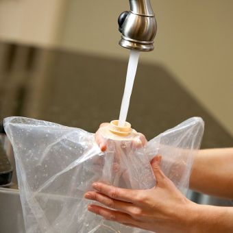 Füllen Sie jeweils Ihr Fomentek Wasserkissen bis zur Linie auf dem Etikett mit Wasser.