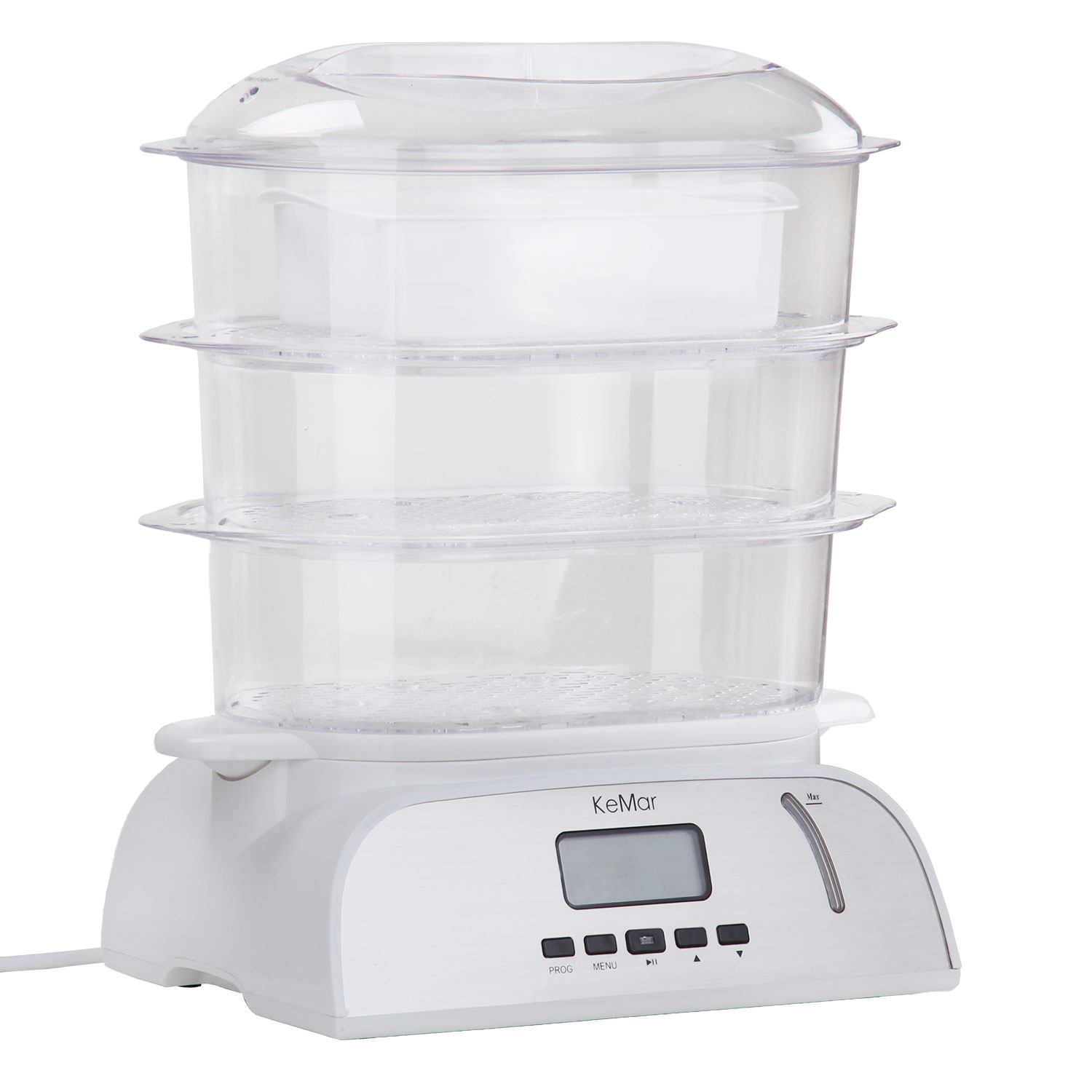 3 transparente, widerstandsfähige Dampfkörbe und ein Deckel